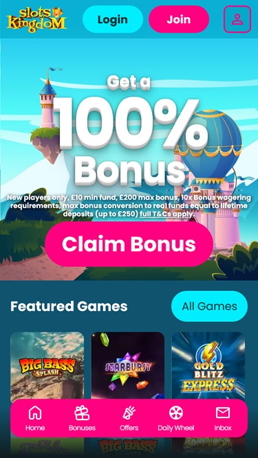 Slots Kingdom Casinoは Microgaming, Net Entertainment, Playtech, 1x2gaming, Barcrest, Big Time Gaming, ELK Studios, lightningboxgames, Oryx, Play'n GO, playson, Quickspin, Thunderkick, Yggdrasil, Wazdan, Realistic Games, Booming Games, Pragmatic Play, Nolimit City, Red Tiger Gaming, Spinomenal, Red Rake Gaming, FunFair, Spin Games, Triple Edge Studios, Northern Lights Gaming, Stormcraft Studios, Switch Studios, Bulletproof Games, All41 Studios, Gluck Games, Gameburger Studios, Pulse 8 Studios, Neon Valley Studios, Golden Rock Studios, Shuffle Master, SpinPlay Games, HungryBear Gaming, Real Dealer Studios, GONG Gaming, Blue Guru Games, On Air Entertainment, Buck Stakes Entertainment, Design Works Gaming, Games Global, 2by2 Gaming, Ash Gaming, Bally Technologies, bluberi, Blueprint Gaming, Jumpman Gaming, Leander Games, Merkur Gaming, NextGen, NYX Interactive, Tom Horn Gaming, Inspired Gaming, Gaming Realms, SG Interactive, Gamomat, Red7Mobile, Scientific Games, Reel Time Gaming, Authentic Gaming, Iron Dog Studio, Old Skool Studios, Foxium, Betdigital, Just For The Win, The Games Company, Reflex Gaming, MetaGU, PearFiction Studios, Wild Streak Gaming, Slingshot Studios, Fortune Factory Studios, Jade Rabbit Gaming, 4ThePlayer, AvatarUX, Gamevy, Crazy Tooth Studio, ReelPlay, Alchemy Gaming, Rarestone Gaming, Snowborn Games, Boomerang Studios, Hacksaw Gaming, Max Win Gaming, Gold Coin Studios, Bang Bang Games, Half Pixel Studios, Peter And Sons, Aurum Signature Studios, Lucksome Gaming, Area Vegas, RAW iGaming, Wishbone Games, Circular Arrow, HammerTime Games, INO Games, Nailed It! Games, Atomic Slot Lab, Neko Games, Reel Kingdom, Oros Gaming, Indigo Magic and Light & Wonderを採用しており、ウェブベースのインスタントプレイプラットフォームを介して提供されています。つまり、ダウンロードは不要で、ウェブブラウザから直接カジノゲームを起動できます。また、モバイルプレイにも完全対応しており、スマートフォンやタブレットからゲームにアクセスできます。