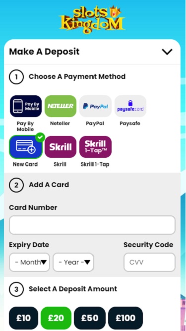 Slots Kingdom Casinoは Microgaming, Net Entertainment, Playtech, 1x2gaming, Barcrest, Big Time Gaming, ELK Studios, EYECON, lightningboxgames, Oryx, Play'n GO, playson, Quickspin, Saucify, Thunderkick, Wazdan, Realistic Games, Booming Games, Pragmatic Play, Nolimit City, Red Tiger Gaming, Spinomenal, Red Rake Gaming, Fantasma Games, Spin Games, Triple Edge Studios, Northern Lights Gaming, Stormcraft Studios, Switch Studios, Bulletproof Games, All41 Studios, Gluck Games, Gameburger Studios, Pulse 8 Studios, Neon Valley Studios, Golden Rock Studios, Shuffle Master, SpinPlay Games, Real Dealer Studios, GONG Gaming, Blue Guru Games, On Air Entertainment, Buck Stakes Entertainment, Design Works Gaming, Games Global, 2by2 Gaming, Ainsworth, Ash Gaming, Bally Technologies, bluberi, Blueprint Gaming, Jumpman Gaming, Leander Games, Merkur Gaming, NextGen, Tom Horn Gaming, Inspired Gaming, Gaming Realms, Genii, SG Interactive, Gamomat, Red7Mobile, Scientific Games, Reel Time Gaming, Authentic Gaming, Iron Dog Studio, Old Skool Studios, Foxium, Betdigital, Just For The Win, The Games Company, Storm Gaming Technology, MetaGU, PearFiction Studios, Wild Streak Gaming, Slingshot Studios, Fortune Factory Studios, Jade Rabbit Gaming, 4ThePlayer, AvatarUX, Gamevy, Crazy Tooth Studio, ReelPlay, Alchemy Gaming, Rarestone Gaming, Snowborn Games, Boomerang Studios, Hacksaw Gaming, Max Win Gaming, Gold Coin Studios, Half Pixel Studios, Peter And Sons, Aurum Signature Studios, Lucksome Gaming, Area Vegas, RAW iGaming, Wishbone Games, HammerTime Games, INO Games, Nailed It! Games, Atomic Slot Lab, Neko Games, Reel Kingdom, Oros Gaming and Light & Wonderを採用しており、ウェブベースのインスタントプレイプラットフォームを介して提供されています。つまり、ダウンロードは不要で、ウェブブラウザから直接カジノゲームを起動できます。また、モバイルプレイにも完全対応しており、スマートフォンやタブレットからゲームにアクセスできます。