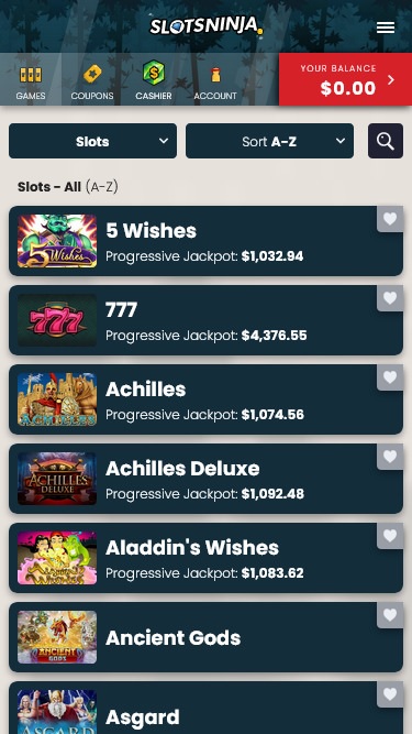まず最初に、Slots Ninjaは「スロットだけ」のオンラインカジノではないことをお伝えしておきます。このゲームサイトを訪れるプレイヤーは、新作ゲーム、プログレッシブゲーム、スロット、スペシャルゲーム、テーブルゲーム、ビデオポーカーなど、魅力的なカテゴリーを幅広く楽しむことができます。このレビューを執筆時点では、ライブディーラーカジノセクションのみが欠けています。