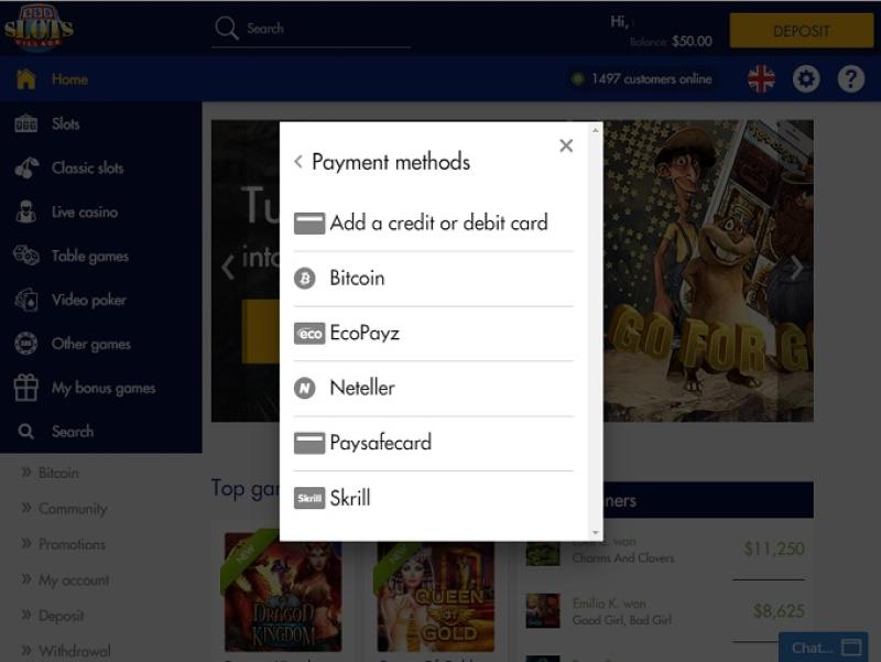 での銀行オプション Slots Village
