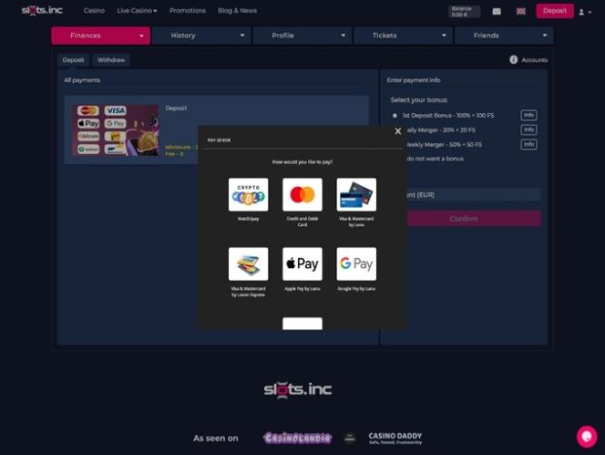 Slots.incは、驚くほど豊富なゲームコレクションを誇り、豪華なウェルカムカジノボーナス、ロイヤルティプラン、暗号通貨を含む豊富な決済オプションなどを提供しています。もし興味をお持ちいただけましたら、ぜひお楽しみに。カジノのサービス内容について、これから詳しくレビューしていきます!
