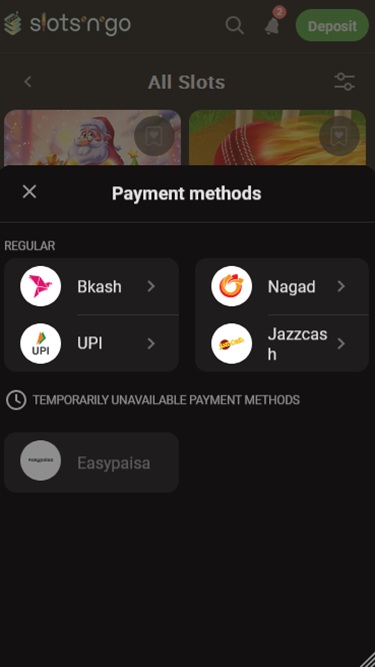 Slotsngo Casinoのウェブサイトは、英語に加えてヒンディー語でも閲覧可能です。これは、同ブランドのターゲット層を考慮すると当然のことです。また、すべてがモバイルギャンブル体験に最適化されているため、AndroidおよびiOSのプレイヤーはスマートフォンやタブレットで問題なくゲームを楽しむことができます。