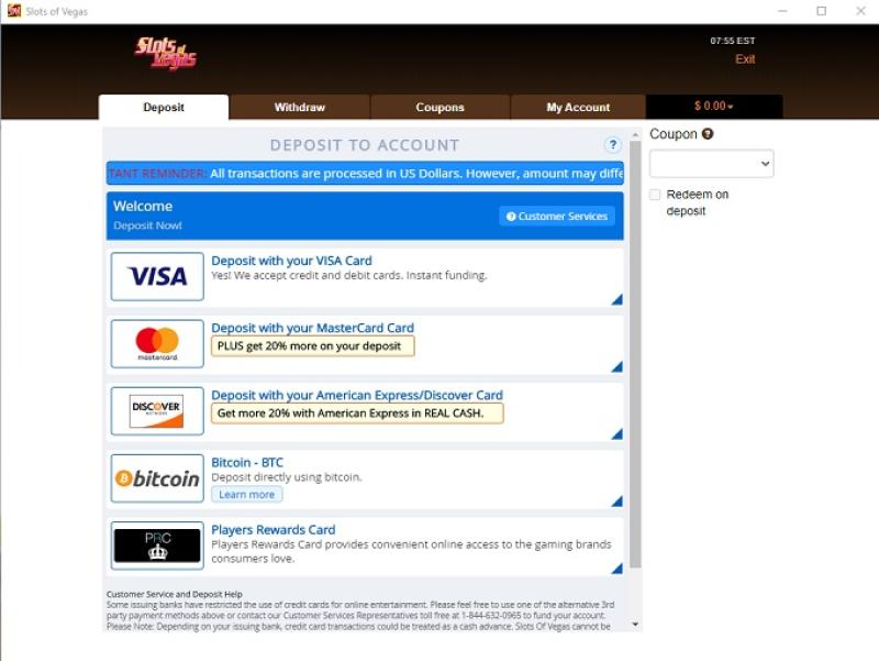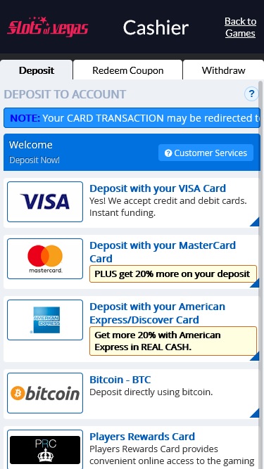 Slots of Vegas カジノは Real Time Gaming and Spinlogic Gamingによって運営されており、プレイヤーはダウンロード可能なソフトウェアと、Web ブラウザーでプレイできる Web ベースのプラットフォームの両方を通じてカジノにアクセスできます。Baccarat