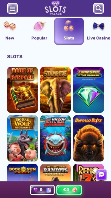 SlotsPalaceでおすすめのタイトルは次のとおりです:Book Of Rampage、Stampede、Twin $pin 117649 Megaways、Big Bad Wolf Megaways、Razor Shark、Buffalo Blitz、Book Of Sun Choice、Big Bucks Bandits Megaways、Reno 7s、Mystery Of Eldorado、San Quentin X Ways、Joker Win、Eye of Anubis、Gonzo's Gold、Fire In The Hole、Fat Drac、Siberian Wolf、Sakura Fortune、Black Wolf Hold And Win、Wolf Fang、Ramses Rising、Buffalo Power Hold And Win、Golden Glyph 2、Deadwood、Jammin' Jars、Sticky Bandits Wild Return、Vikings Go Berzerk、Book Of Diamonds、Fire Blaze Jackpots Blue Wizard、Shining Crown、Tiger`s Glory、10000 Wishes、Hallow Pick、Super Sevens & Fruits 6 Reels、Bankin` Bacon、Darkリール、アトランティス Ca$H Collect、ハロウィーンフォーチュンスクラッチ、フルムーンワイルドトラック、レトロパンプキン、ゲイターゴールドギガブロックス、リッチズオブミッドガルドランドアンドエクスパンド、ローマ黄金時代、ブックオブエリクサー、ブックオブホル、コンクェステラ、デンジャラスモンスター、フォーチュンファイブ、フォーチュンスリー、レイジングライオン、スローンオブキャメロット、トライブ、アトミックリアクター、ロードフォーチュン2 - ホールドアンドウィン、ストーリーヘラクレス...