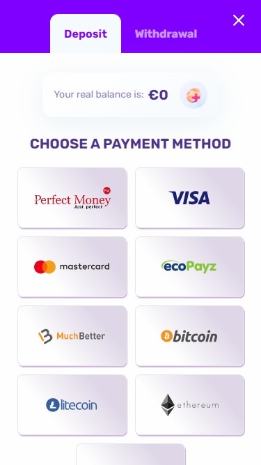 カジノインターフェースはマルチプラットフォームに最適化されており、あらゆるデスクトップおよびモバイルデバイスに完璧にフィットします。ライトモードテンプレートを使用しているため明るく、紫と金色のカラーパターンとカラフルな3Dシェイプを組み合わせたデザインソリューションにより、非常に鮮やかな印象を与えます。