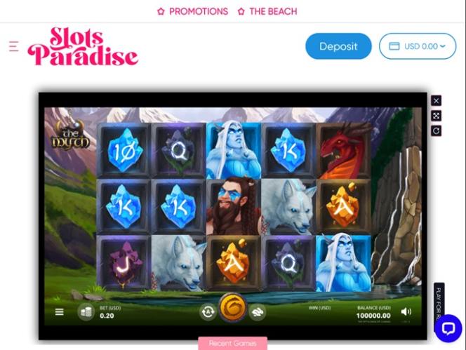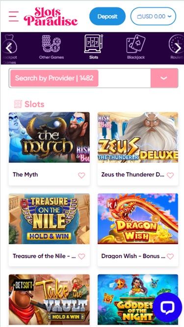 ここで利用できる言語は英語のみですが、これは米国向けのプラットフォームであるため当然のことです。さらに、 SlotsParadise Casinoのゲームカタログ全体がモバイルギャンブル体験に完全に最適化されていることも特筆すべき点です。AndroidとiOSデバイスに完全に対応しており、追加のアプリケーションをダウンロードすることなくお楽しみいただけます。