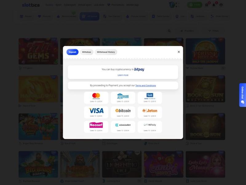 Slottica は、予想どおり、数多くの人気のある魅力的なスロット アドベンチャーを提供していますが、カジノではゲーム、スポーツ、サイバースポーツ、バーチャル スポーツ、ライブ スロットなど、利用可能なすべてのカテゴリーでギャンブラーに多くのギャンブルの興奮も提供しています。