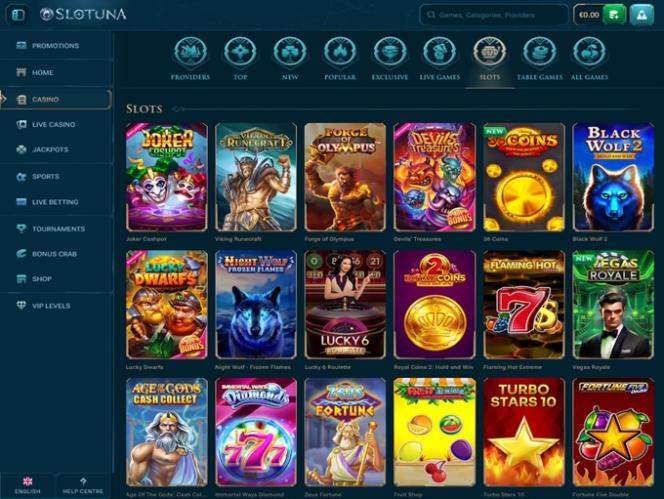 カジノ名からも想像できる通り、Slotunaは様々なジャンルやカテゴリーのゲームを揃えた素晴らしいオンラインスロットのラインナップを提供しており、真のスロットファンにとってまさに理想的な場所です。また、ウェブサイトでは定期的に新作が追加されるため、いつでもエキサイティングなゲームが見つかるはずです。