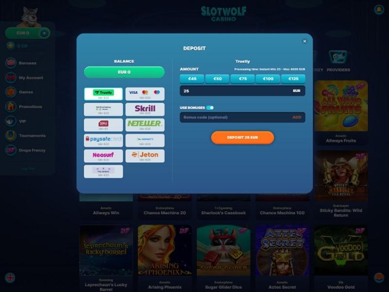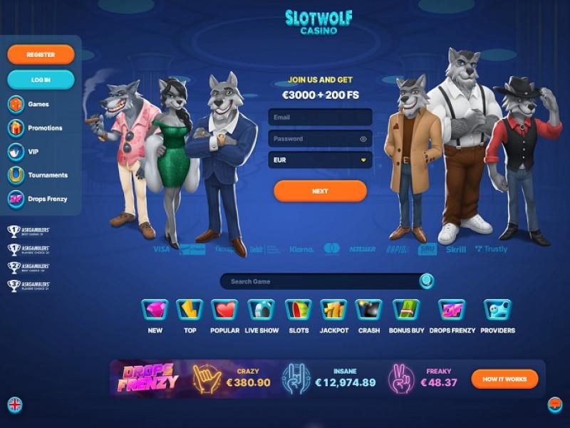 SlotWolfカジノは Microgaming, Net Entertainment, BetSoft, 1x2gaming, Amatic Industries, ELK Studios, Evolution Gaming, iSoftBet, lightningboxgames, Oryx, Play'n GO, playson, Rabcat, Relax Gaming, Thunderkick, Yggdrasil, Endorphina, Wazdan, Realistic Games, Booming Games, Pragmatic Play, Nolimit City, GAMING1, Red Tiger Gaming, Spinomenal, Red Rake Gaming, Skillzzgaming, Fantasma Games, Revolver Gaming, Triple Edge Studios, BGAMING, Northern Lights Gaming, Stormcraft Studios, Electric Elephant Games, Pocket Games Soft, Dreamtech Gaming, Bulletproof Games, All41 Studios, Pulse 8 Studios, Neon Valley Studios, Golden Rock Studios, Spearhead Studios, Swintt, TrueLab Games, SpinPlay Games, GONG Gaming, Lady Luck Games, Buck Stakes Entertainment, Games Global, Amusnet Interactive, Wizard Games, 2by2 Gaming, Ainsworth, NextGen, Pariplay, Push Gaming, Tom Horn Gaming, Authentic Gaming, Iron Dog Studio, Old Skool Studios, Foxium, Just For The Win, Reflex Gaming, Storm Gaming Technology, PearFiction Studios, Wild Streak Gaming, Slingshot Studios, Fortune Factory Studios, Jade Rabbit Gaming, 4ThePlayer, AvatarUX, Gamevy, Crazy Tooth Studio, High 5 Games, ReelPlay, Alchemy Gaming, Plank Gaming, BB Games, Black Pudding Games, Snowborn Games, Boomerang Studios, Hacksaw Gaming, Max Win Gaming, Gold Coin Studios, Bang Bang Games, Half Pixel Studios, Slotmill, SilverBack Gaming, Peter And Sons, Armadillo Studios, FlipLuck, Apparat Gaming, Neko Games and Reel Kingdomによって運営されており、グループのゲームはウェブブラウザで読み込まれるインターネットプラットフォームを通じて提供されています。サイトは洗練されたデザインで操作しやすく、完全なモバイルサポートも搭載されています。