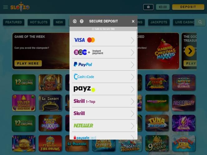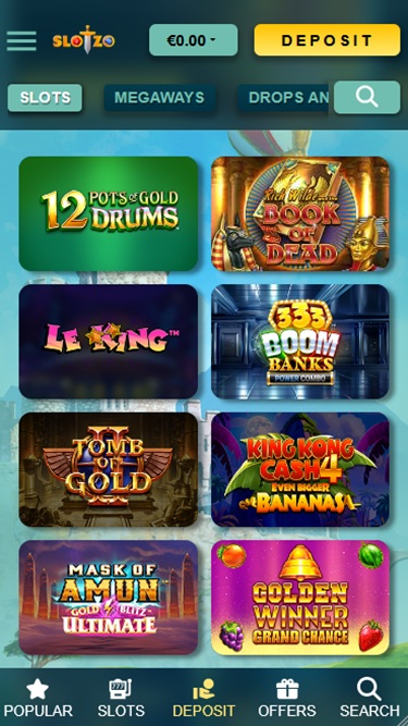 Slotzo Casino は Amaya, Microgaming, Net Entertainment, BetSoft, 1x2gaming, Amatic Industries, Barcrest, Big Time Gaming, Evolution Gaming, EYECON, Ezugi, iSoftBet, lightningboxgames, Oryx, Play'n GO, playson, Quickspin, Yggdrasil, Wazdan, Realistic Games, Booming Games, Stakelogic, Pragmatic Play, GAMING1, Red Tiger Gaming, Spinomenal, Red Rake Gaming, Skillzzgaming, Fantasma Games, SYNOT Games, Skywind, Triple Edge Studios, Northern Lights Gaming, Stormcraft Studios, All41 Studios, Gluck Games, Gameburger Studios, Pulse 8 Studios, Shuffle Master, SpinPlay Games, Real Dealer Studios, Games Global, Wizard Games, Ainsworth, Bally Technologies, bluberi, Blueprint Gaming, Endemol Games, NextGen, Pariplay, Tom Horn Gaming, WMS, Inspired Gaming, Gaming Realms, SG Interactive, Gamomat, Red7Mobile, Scientific Games, Reel Time Gaming, Authentic Gaming, betiXon, Bally Wulff, Iron Dog Studio, Old Skool Studios, Foxium, Betdigital, Just For The Win, Reflex Gaming, PearFiction Studios, Wild Streak Gaming, Slingshot Studios, Fortune Factory Studios, RubyPlay, 4ThePlayer, AvatarUX, Gamevy, High 5 Games, ReelPlay, Alchemy Gaming, Snowborn Games, Hacksaw Gaming, Bang Bang Games, Slotmill, Peter And Sons, Lucksome Gaming, Area Vegas, Leap Gaming, Wishbone Games, Spribe, INO Games, Nailed It! Games, Atomic Slot Lab, Neko Games, Reel Kingdom, Oros Gaming, Indigo Magic and Light & Wonderを採用しており、インターネットブラウザで読み込まれるウェブベースのプラットフォームを採用しています。サイトは洗練されたデザインで、操作も簡単です。また、モバイル対応も搭載されているため、スマートフォンやタブレットからでも賭けることができます。