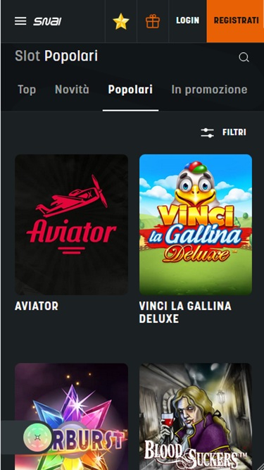 SNAIは Microgaming, Net Entertainment, Playtech, BetSoft, 1x2gaming, Barcrest, Big Time Gaming, ELK Studios, Espresso Games, Evolution Gaming, Habanero Systems, iSoftBet, lightningboxgames, Novomatic, Oryx, Play'n GO, playson, Quickspin, Rabcat, Relax Gaming, Thunderkick, WM, Yggdrasil, Endorphina, GameArt, Booming Games, Pragmatic Play, Nolimit City, Red Tiger Gaming, IGT, Fantasma Games, SYNOT Games, Skywind, Spinmatic, Triple Edge Studios, Fazi, Stormcraft Studios, Pocket Games Soft, All41 Studios, Gluck Games, Gameburger Studios, Neon Valley Studios, Shuffle Master, SpinPlay Games, SmartSoft Gaming, Eurasian Gaming, Games Global, Amusnet Interactive, Ash Gaming, Bally Technologies, Blueprint Gaming, Greentube, Leander Games, Merkur Gaming, NextGen, WMS, Inspired Gaming, Gaming Realms, SG Interactive, Gamomat, Red7Mobile, Scientific Games, Reel Time Gaming, Capecod Gaming, Foxium, Betdigital, Just For The Win, PearFiction Studios, Wild Streak Gaming, Fortune Factory Studios, RubyPlay, 4ThePlayer, AvatarUX, Gamevy, ReelPlay, Rarestone Gaming, Snowborn Games, Lucksome Gaming, Area Vegas, RAW iGaming, Spribe, Nailed It! Games, Reel Kingdom, Nazionale Elettronica and Light & Wonderによって運営されており、カジノのゲームはウェブベースのインスタントプレイプラットフォームで提供されており、インターネットブラウザから直接読み込まれます。そのため、面倒なソフトウェアをパソコンにダウンロードする必要はありません。また、このサイトはモバイルゲームにも対応しており、スマートフォンやタブレットからプレイできます。