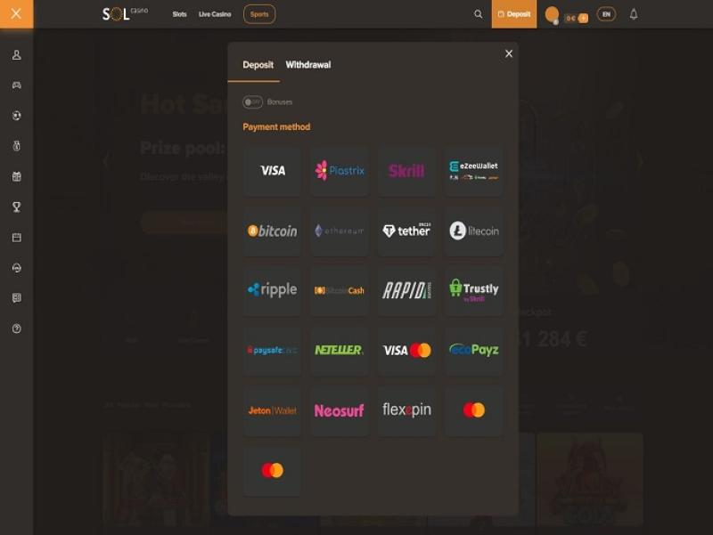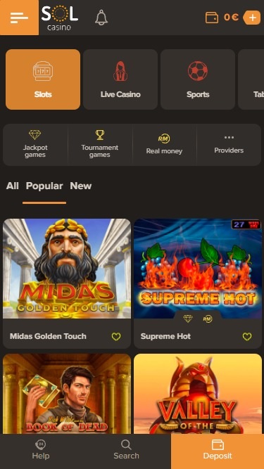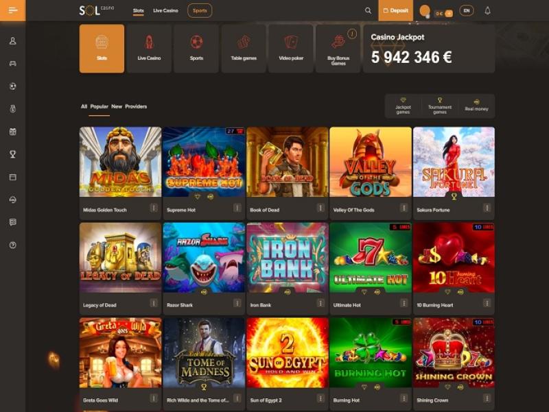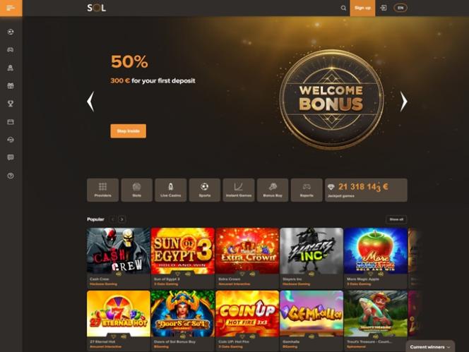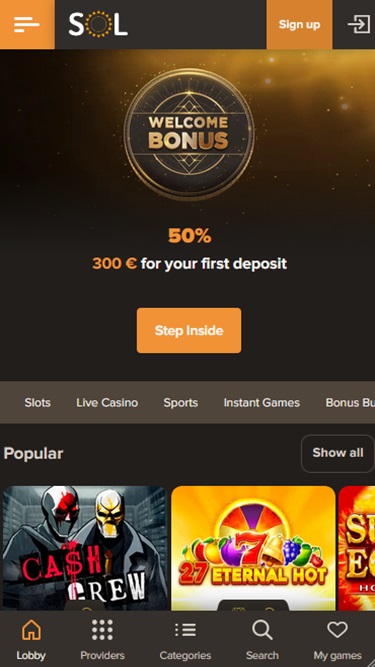 Sol でのアカウント登録は非常に簡単な手順で、プレイヤーはほぼ瞬時にカジノ ロビーに入場できます。