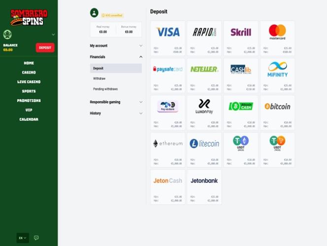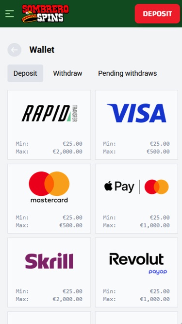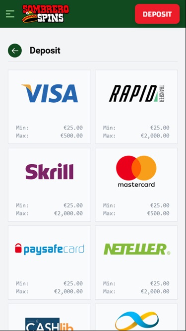 同ブランドは標準的なロイヤルティプログラムへの参加を認めていませんが、最も忠実なプレイヤーに報酬を与えるために設計された招待制のVIPクラブを備えています。招待を受けるには、Sombrero Spinsを定期的に訪れ、お気に入りのゲームをプレイし続けてください。