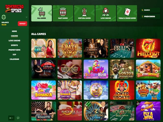 幸いなことに、Sombrero Spinsチームはこのことを間違いなく理解しており、だからこそプレイヤーはウェブサイトで8000種類以上のユニークなカジノゲームをプレイできるのです。ライブラリには90社以上のソフトウェアプロバイダーからリリースされたゲームが揃っており、多様でバラエティ豊かなギャンブル体験をお楽しみいただけます。