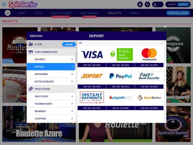 Spin Genieは、世界トップクラスの開発会社による数十種類のビデオスロットを提供しており、スロットは顧客への提供内容の大きな部分を占めています。しかし、プログレッシブジャックポットは提供されていないようで、Net EntertainmentやIGTの巨額賞金を獲得するチャンスは得られません。