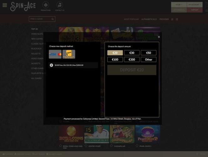 入出金に暗号通貨を使いたい方には、Spin-Aceカジノはおすすめできません。このカジノの運営者は、Visa、Mastercard、 Skrill 、ecoPayz、銀行振込、miFinityなど、一般的な決済方法での入金を許可しています。
