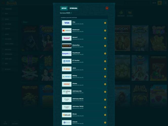 さまざまな法定通貨に加えて、プレイヤーは暗号通貨を使用して金融取引を行うこともできます。また、選択できる利用可能なデジタルコインも多数あります。