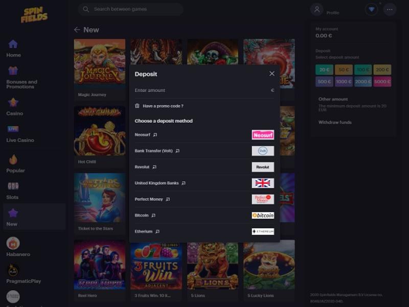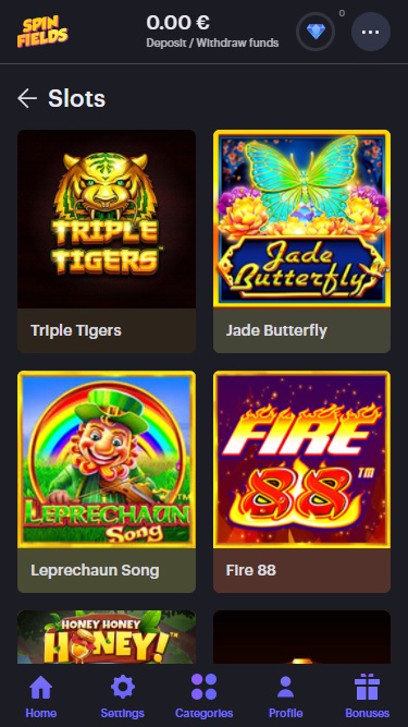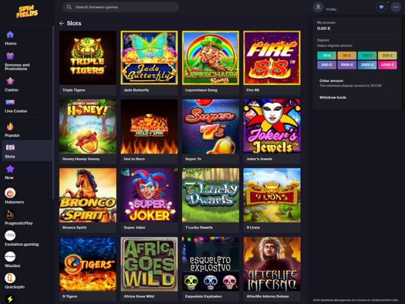 Spinfields Casino スクリーンショット