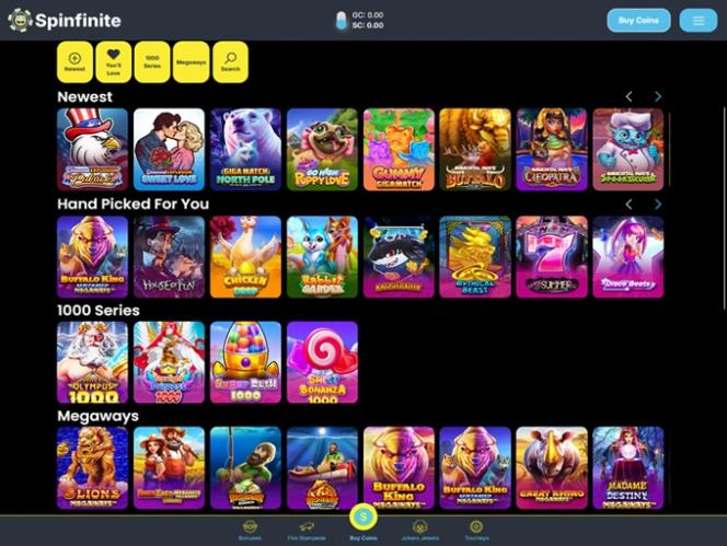 Spinfiniteカジノでプレイする際、プレイヤーはゴールドコインまたはスイープコインを使ってすべてのゲームを探索し、楽しむことができます。どちらの仮想通貨にも特定の用途があります。どちらの通貨も完全に無料で獲得できることにご留意ください。