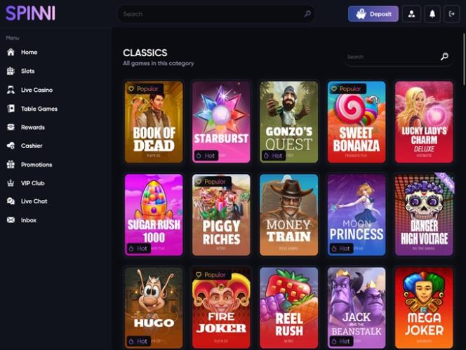 Spinni Casinoでは、Wanted Dead Or A Wild、Barn Festival、Agent Jane Blonde Max Volume、Release the Kraken、Koi Princess、John Hunter And Book Of Tut、Joker's Jewels、777 Strike、Zillard King、Fiery Sevens Exclusive、Might of Ra、15 Tridents、Disco Beats、Big Wheel Wins、Break Da Bank Again、Christmas Big Bass Bonanza、Rainbow Gold、25,000 Talons、Amazing Link Fates、Gorilla Riches、The Ultimate 5、Joker Pro、Fruits and Beyond、Fruit Party 2、Chicken Drop、Amazing Links Riches、Pearl Prizes、Book Of Captain Silver、11 Enchanting Relics、1524 Golden Quest、1942: Sky Warrior、3 Golden Wishes、3D Blackjack、3D European Roulette、5 Star Knockout、7 Deadly Spins、7 Luckyなどのタイトルをお楽しみいただけます。 Dwarfs、777 Rainbow Respins、9 Pots of Gold HyperSpins、A Pirates Quest、A Spinfull Of Dollars、Aces Fly、Adventures Of Captain Blackjack、Africa Goes Wild、Afterlife Inferno、Agent Valkyrie、Alexandria City of Fortune、Alibaba And The 40 Thieves、American Burger、Apollo God Of The Sun、Arabian Nights Desert Flower、Arabian Nights Tales Of Gold、Arabian Spins、Arctic Enchantress、Arctic Fruits、Asia Wins、Astro Pandas、Atlantide、Ave Caeser、Aztar Fortunes など。