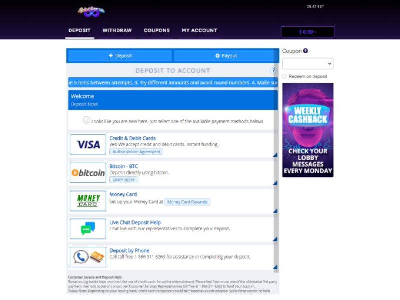 プレイヤーは、スロットウェルカムボーナス、追加スピンを提供するウェルカムボーナス、ビットコイン入金ウェルカムボーナス、テーブルウェルカムボーナスなどのオファーを請求できます。すべてのオファーには利用規約が適用され、賭け条件も異なります。実際に入金する前に、ボーナスを請求済みであることを確認してください。そうでない場合、プロモーションオファーはご利用いただけません。