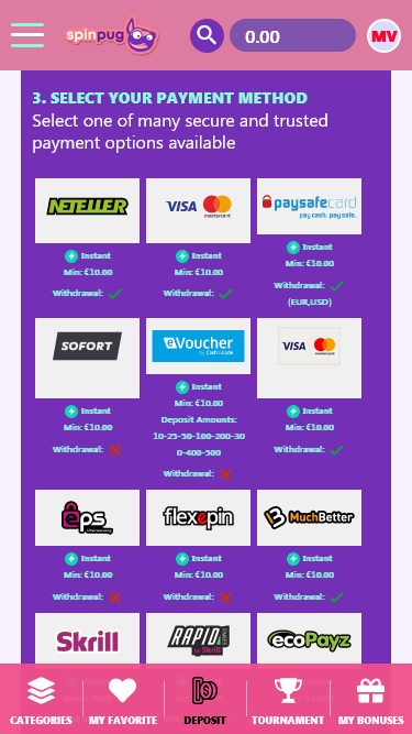 SpinPug は最新の技術を使用し、すべての iGaming トレンドに従い、外出先でも優れたゲーム体験を提供しているため、デスクトップ プラットフォーム バージョンに含まれるすべてのオンライン カジノ ゲームは、モバイル カジノ ゲーム ライブラリの一部でもあります。