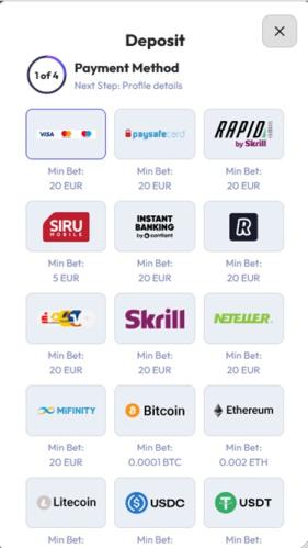 プレイヤーは、暗号通貨と、デビットカードやクレジットカード、銀行振込、電子ウォレットなどの従来の支払い方法の両方を利用できます。