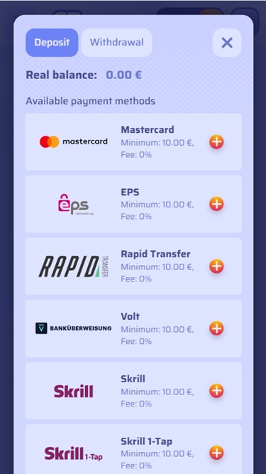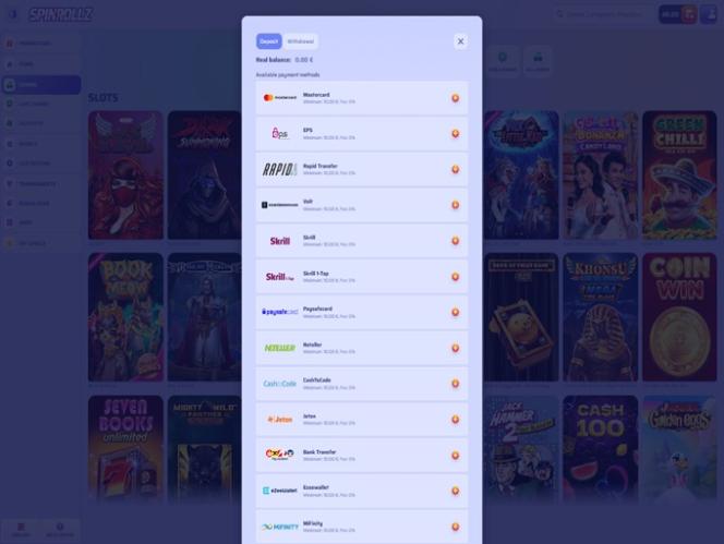 決済方法に関しては、プレイヤーが入金・出金できる選択肢は実に豊富です。従来の法定通貨決済手段としては、 Visa 、 Mastercard 、 Skrill 、 Neteller 、 Paysafecard 、 Jeton 、 Payz 、 Neosurfなどが挙げられますが、代替手段としては、 Bitcoin 、 Ethereum 、 Litecoin 、 Tron 、 Tether 、 USD Coin 、 Solanaなどが挙げられます。