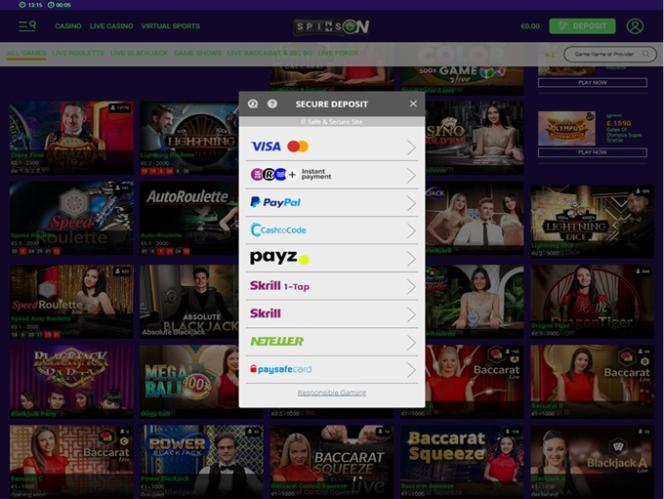 Spinson Casino は、マルタの管轄を通じてゲーム運営を行うライセンスを取得しています。