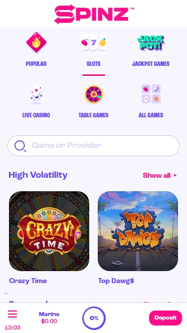 - Spinz Casino は入金および出金の処理に対して手数料を請求する権利を留保します。