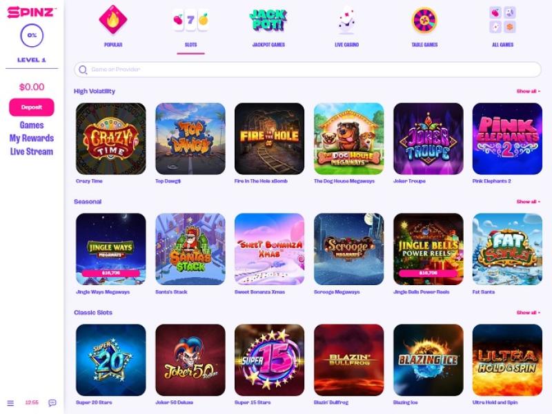 このカジノの名前は、そのスロットゲームライブラリをよく表しています。Spinz Casino は素晴らしいビデオスロットゲームセクションを提供しており、まさに私たちの期待通りでした!