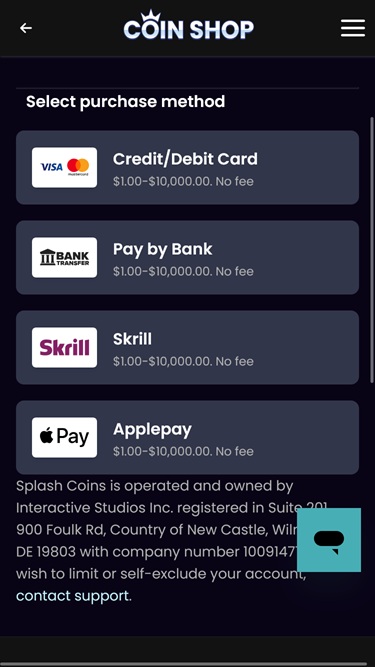 Splash Coins からのプレイヤーを歓迎します Ohio