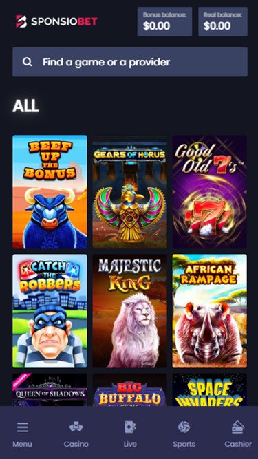 すべてのカジノゲームはモバイルデバイスでもプレイできます。iOSでもAndroidでも、モバイルブラウザでSponsioBetにアクセスしてログインするだけで、すぐにお楽しみいただけます。