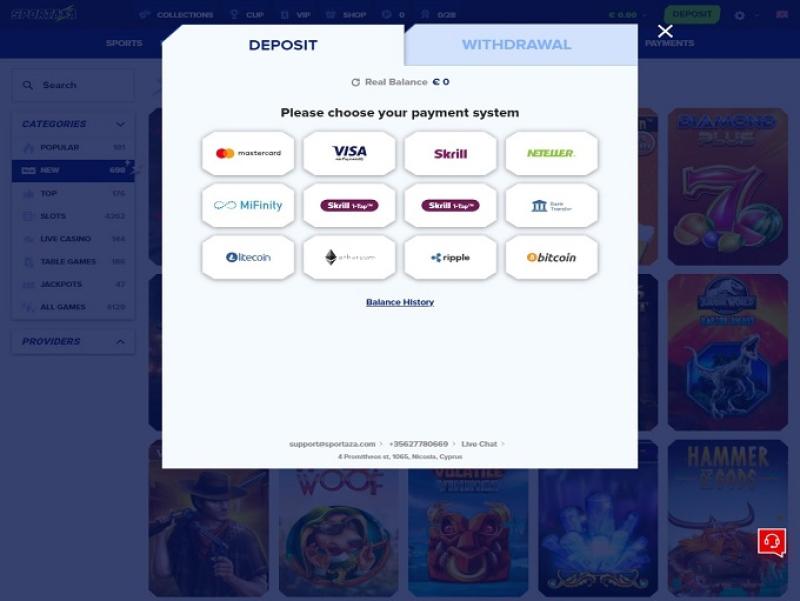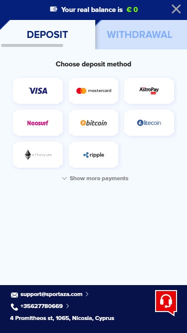 - Sportaza は独自の裁量により最低および最大の入金限度額を定義する権利を留保します。