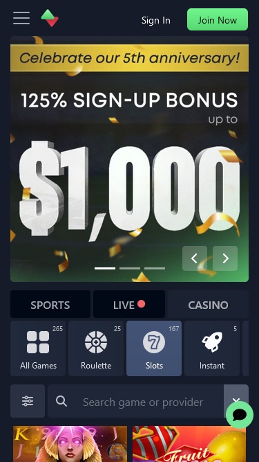 このギャンブルプラットフォームの見た目に関しては、特に不満はありません。カジノのウェブデザインは非常にすっきりとしていて直感的で、メインカラーは濃い青です。