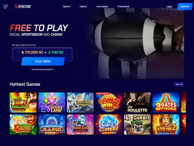 Sportzinoは、エキサイティングな懸賞要素を備えた魅力的なソーシャルゲームプラットフォームで、アメリカのユーザー(一部州による制限あり)を魅了することを目指して設計されています。オンラインスロット、クラッシュゲーム、フィッシングゲームなど、多種多様なカジノスタイルのゲームを揃え、スポーツブックも提供しています。プレイヤーは様々なプロモーション、ボーナス、ジャックポットを活用しながら、ゴールドコインや懸賞コインを獲得できるトーナメントに参加できます。