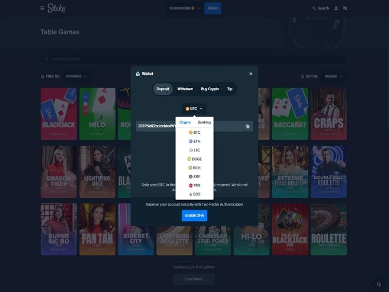 さらに、このプラットフォームはEvolutionの支援を受けており、高品質なライブストリーミングを提供しています。豊富なオプションと安全で暗号資産対応の入金方法を備えたStake Casinoなら、いつでもお気に入りのカジノテーブルゲームに気軽に参加できます。