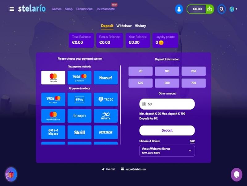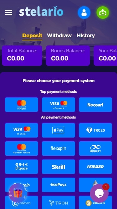 Stelario Casino の利用規約は標準的であり、プレイヤーに対して不公平であると懸念される点は見つかりませんでした。以下は Stelario で選択できる入金および出金オプションを含むさまざまな銀行オプションです。