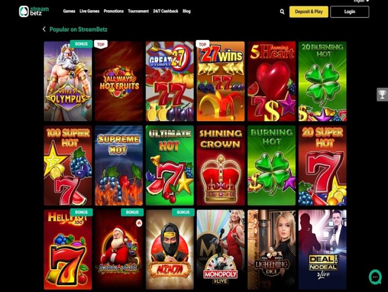 StreamBetzカジノにご参加いただければ、Hell Hot 100、Miss Cherry Fruits、Johny Cash、Fire Joker、Lucky Lady Moon、Aztec Magic Deluxe、Elvis Frog、Bonanza Billionsなど、現在最も人気のあるスロットゲームの数々をお楽しみいただけます。すべてのプレイヤーが楽しめるスロットゲームの数は本当に膨大です。