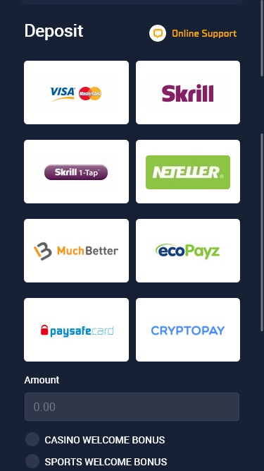支払い方法は国によって異なりますが、キャッシャーは暗号通貨バンキングオプション、デビットカードとクレジットカード、電子ウォレット、その他のオンライン支払いシステムなど、入金と出金のための最新の一般的な支払い方法を多数サポートしています。