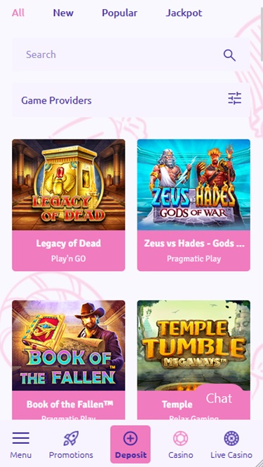 Play'n GO, playson, Quickspin, Relax Gaming, Thunderkick, Endorphina, Booming Games, Pragmatic Play, Nolimit City, Red Tiger Gaming, Fantasma Games, Kalamba, Revolver Gaming, Spadegaming, Triple Edge Studios, Northern Lights Gaming, Stormcraft Studios, Switch Studios, All41 Studios, Gameburger Studios, Pulse 8 Studios, Neon Valley Studios, Golden Rock Studios, Swintt, SpinPlay Games, GONG Gaming, On Air Entertainment, Buck Stakes Entertainment, Games Global, Reevo, 2by2 Gaming, Blueprint Gaming, Merkur Gaming, Tom Horn Gaming, Reel Time Gaming, Iron Dog Studio, Old Skool Studios, Foxium, Just For The Win, PearFiction Studios, Wild Streak Gaming, Slingshot Studios, Fortune Factory Studios, AvatarUX, Crazy Tooth Studio, ReelPlay, Alchemy Gaming, BB Games, Snowborn Games, Boomerang Studios, Hacksaw Gaming, Max Win Gaming, Gold Coin Studios, Half Pixel Studios, Peter And Sons, Aurum Signature Studios, FastSpin, Lucksome Gaming, Area Vegas, Wishbone Games, Circular Arrow, Print Studios, HammerTime Games, INO Games, Nailed It! Games, Neko Games and Oros Gamingを採用しており、Webベースのプラットフォームを通じてゲームを提供しています。つまり、ゲームをプレイするためにソフトウェアをダウンロードする必要はありません。外出先でもプレイしたい方には、モバイルカジノもご利用いただけます。