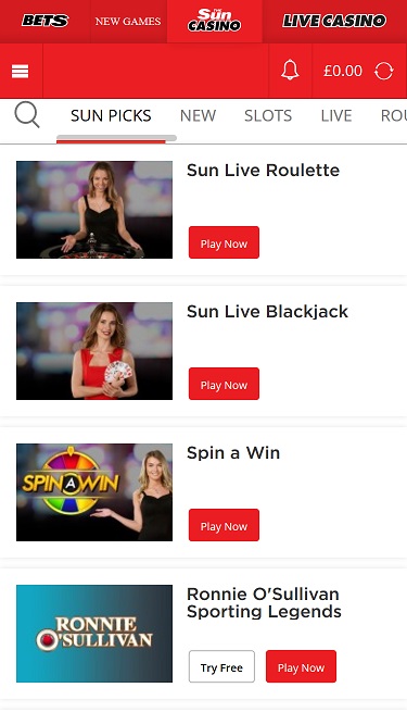 Sun Bets Casino スクリーンショット