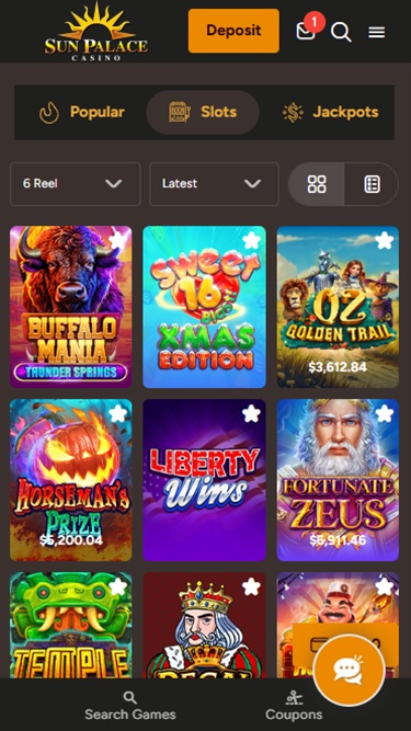 Sun Palace Casino は Real Time Gaming and Spinlogic Gamingを採用しており、スロット、テーブルゲーム、ビデオポーカーなど、数十種類のゲームを提供しています。スロットの制作品質は少し物足りないものの、テーブルゲームとビデオポーカーは見た目もプレイ感も申し分ありません。