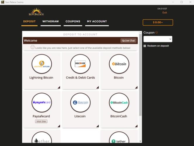 Sun Palace Casino の銀行システムは少々制限はあるものの、まともなものです。ただし、最近支払いの遅延が報告されています。