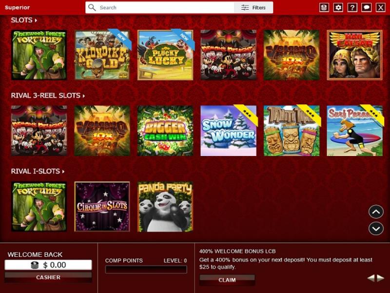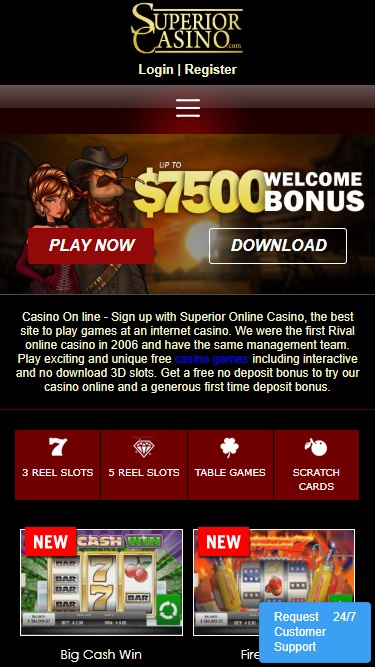 Superior Casinoは Rivalを採用しており、ゲームはダウンロード可能なソフトウェアと、インターネットブラウザから直接読み込まれるインスタントプレイの両方で提供されています。モバイルプレイにも対応しており、スマートフォンやタブレットでデータ接続が可能な場所であればどこでもプレイできます。