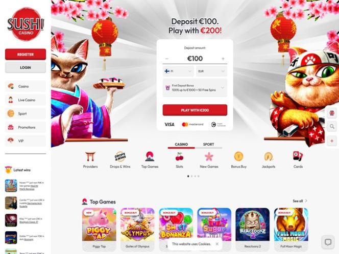 このブランドのターゲット顧客は、ドイツとフィンランドのカジノプレイヤーです。ウェブサイトは、英語、ドイツ語、イタリア語、フィンランド語、フランス語、ハンガリー語、日本語、ノルウェー語、ポーランド語、ギリシャ語、ポルトガル語、スペイン語など、世界各国の言語にローカライズされています。これは、他の国際的なギャンブラーも歓迎されていることを明確に示しています。このオンラインカジノは一見して非常に魅力的で、どの地域のプレイヤーでもSushi Casinoで楽しめるはずです。