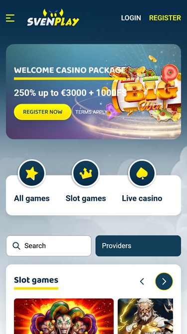 Svenplay Casinoは Net Entertainment, BetSoft, ELK Studios, Evolution Gaming, Ezugi, Habanero Systems, Oryx, Play'n GO, playson, Thunderkick, Yggdrasil, Endorphina, Wazdan, Pragmatic Play, Nolimit City, Red Tiger Gaming, Kalamba, Spadegaming, Bulletproof Games, Gluck Games, Swintt, Blue Guru Games, Inspired Gaming, Gamomat, Authentic Gaming, Bally Wulff, Reflex Gaming, Wild Streak Gaming, Golden Hero, 4ThePlayer, Gamevy, BB Games, Bang Bang Games, Arcadem, Peter And Sons, Playgon, Atomic Slot Lab, Reel Kingdom and Givme Gamesを採用しており、ゲームはブラウザから読み込まれるウェブベースのプラットフォーム上で提供されます。サイトは洗練されたデザインで、操作も簡単です。モバイルサポートも搭載されているため、スマートフォンやタブレットからでもギャンブルをお楽しみいただけます。