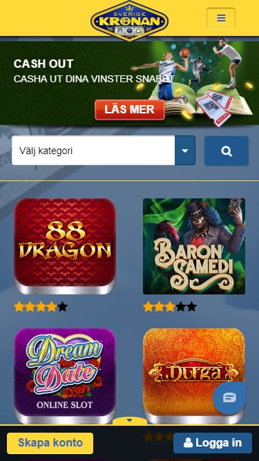 SverigeKronan は標準的なカジノ ゲームに加えて、顧客にスポーツ ベッティング サービスも提供しています。
