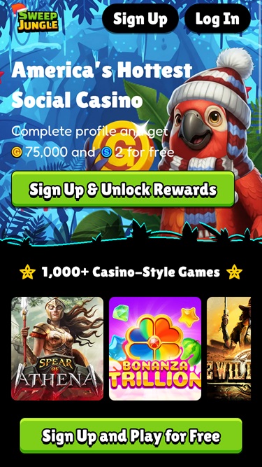 Sweep Jungleは、アメリカ合衆国(利用規約に記載されている通り、一部の州ではご利用いただけません)のプレイヤーを歓迎する、総合的なソーシャルカジノです。カジノスタイルのオンラインスロットの豊富なラインナップと、数々の魅力的なプロモーション、イベント、ボーナスを提供することで、素晴らしい体験を提供することを目指しています。プレイヤーは、購入手続きなしで、ブランドが提供するすべての特典をお楽しみいただけます。