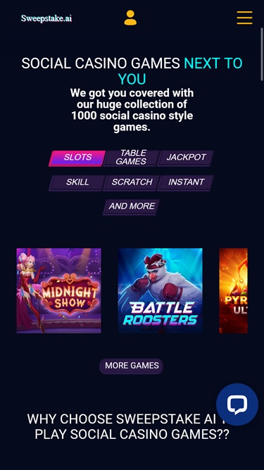 Android および iOS のゲーマーは、 Sweepstake.ai が提供するすべてを見逃す心配をする必要はありません。同ブランドは、Web サイト全体をスマートフォンおよびタブレット ユーザー向けに最適化しているからです。
